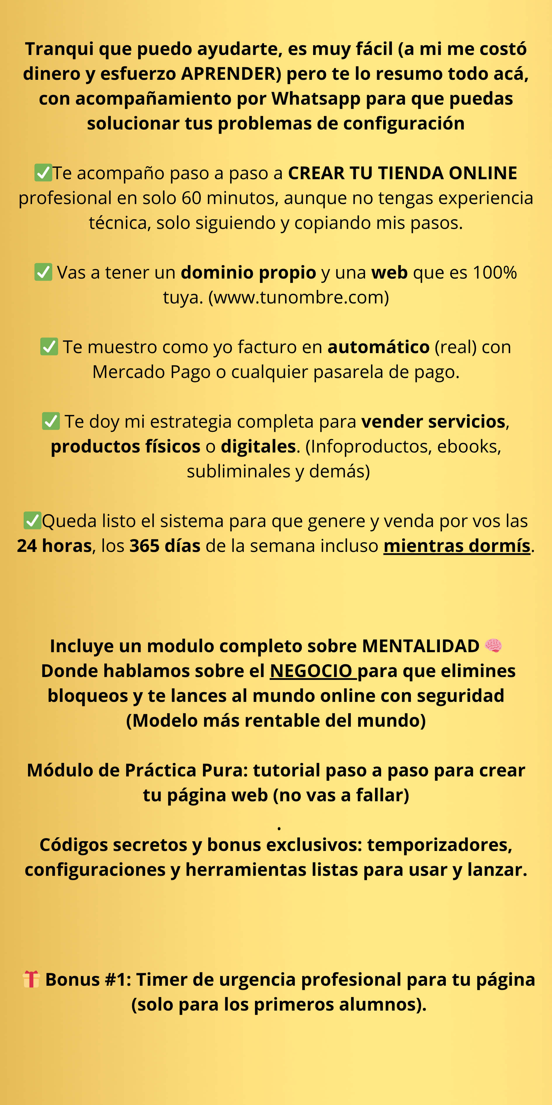 Este curso es la guía paso a paso para que crees tu propia tienda digital y empieces a generar ingresos desde internet las 24hs, aunque nunca hayas vendido nada antes.